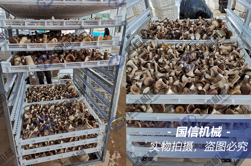 香菇烘干工藝對裝盤的要求嚴(yán)格。裝盤時,需將菌蓋朝上,菌柄朝下,均勻擺放,不能重疊或者堆積,防止對香菇造成損壞,從而影響質(zhì)量。建議采摘后的6個小時內(nèi)必須送入烘干房,如有剩余,則需放入冷庫進(jìn)行冷藏。