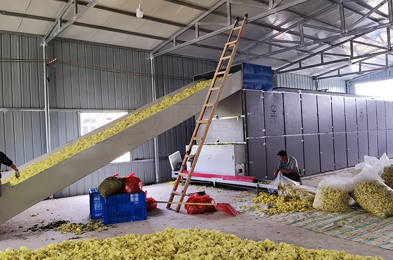 網(wǎng)帶式干燥設(shè)備設(shè)有冷卻層和震動(dòng)輸料裝置,出料溫度低,有利于及時(shí)包裝;箱體外設(shè)有活動(dòng)門,便于清理;還另配自動(dòng)出料風(fēng)冷裝袋設(shè)施,節(jié)省人工,方便快捷。