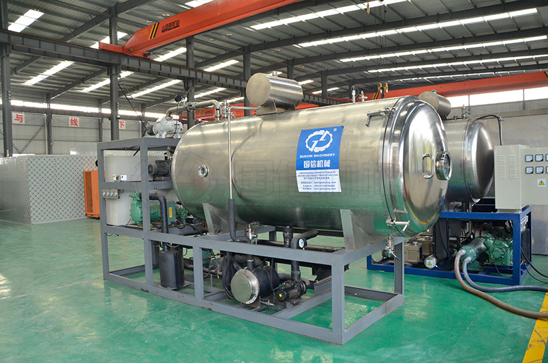 冷凍真空干燥是將切制好的物料,在封閉的容器中快速冷凍,然后降低容器內(nèi)的壓力,使速凍的物料處于真空狀態(tài)下,再加熱使物料內(nèi)部的冰晶直接升華成水蒸氣排出,物料在低溫狀態(tài)下脫水干燥。干燥后產(chǎn)品的營養(yǎng)成分、色澤、味道、形狀等變化很小,產(chǎn)品質(zhì)量較高。但冷凍真空干燥設(shè)備投資大、運(yùn)行成本高,對(duì)于效益好、經(jīng)濟(jì)價(jià)值高、要求嚴(yán)格、產(chǎn)量不大的物料進(jìn)行干燥比較適用,如人參、枸杞、黃氏等。目前,國內(nèi)在脫水蔬菜加工中,冷凍真空干燥應(yīng)用較少。