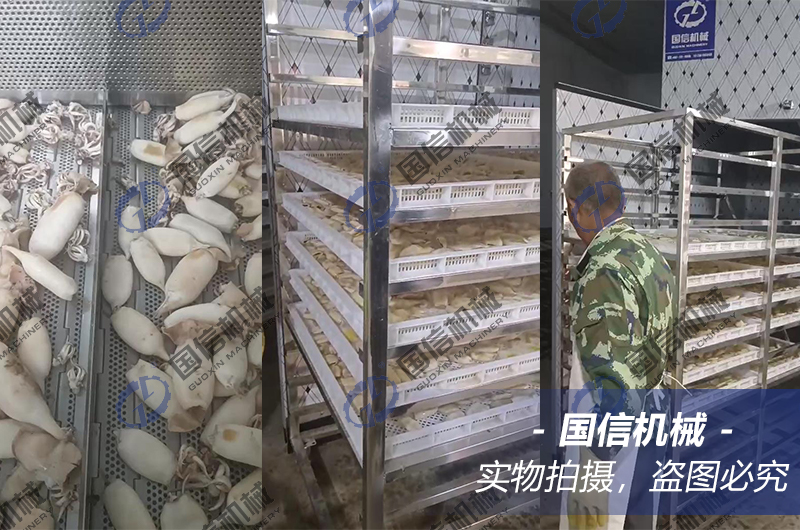水產(chǎn)品烘干前期預(yù)熱階段,溫度要求控制在30℃以內(nèi),低溫烘干6-8個(gè)小時(shí),濕度控制在80%左右。