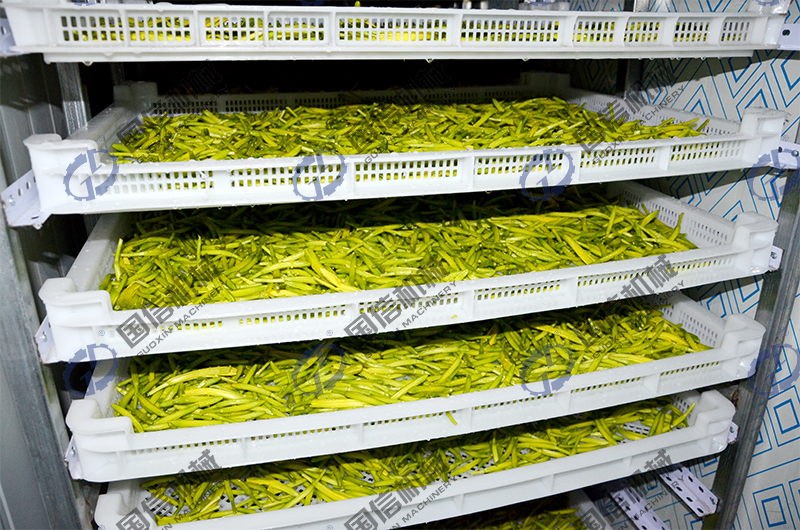 公司生產(chǎn)的空氣能黃花菜烘干房是一種以空氣能熱泵為主機(jī),以電作為熱源,烘干后產(chǎn)品品質(zhì)很好且無污染物排放。使用空氣能烘干機(jī)烘干黃花菜不僅免受污染與霉變的困擾,而且設(shè)備智能化程度高,操作簡單方便,無需專人看管。使用熱泵干燥物料成為國家倡導(dǎo)的一種節(jié)能型干燥方式。黃花菜烘干房同時(shí)具有殺青功能,由于黃花菜在烘干前必須先進(jìn)行殺青,因此才能達(dá)到護(hù)色的效果,所以在選擇設(shè)備時(shí)必須選擇具有殺青功能的烘干設(shè)備,有的烘干房不具有這種功能,而我們國信生產(chǎn)的黃花菜烘干房就有這種功能,希望需要的朋友在選擇黃花菜烘干房時(shí)要慎重選擇。