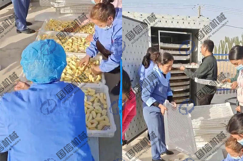 中小型空氣能熱泵烘干機其實是目前主流的果蔬烘干設備,可日烘干處理果蔬兩百公斤到3噸左右的產(chǎn)量需求,采用的是靜態(tài)烘干模式,主要是由提供穩(wěn)定熱源的熱泵主機、高保溫性能的聚氨酯板房、耐高溫高濕環(huán)境的軸流風機和精致的推車托盤組成,工作原理是:通過將切分后的果蔬均勻平鋪到托盤,放置在推車上后,送進烘干房,烘干房的熱源系統(tǒng),熱泵烘干機會提供穩(wěn)定熱源,然后在循環(huán)風機的作用下,對烘干房內(nèi)的果蔬片、條、粒等進行烘干。熱泵烘干機產(chǎn)生的是純凈的熱風,烘干房內(nèi)部也是密閉的環(huán)境,因此整個烘干環(huán)境不會使果蔬受到任何的外界污染物侵入,烘干品質(zhì)非??煽?。