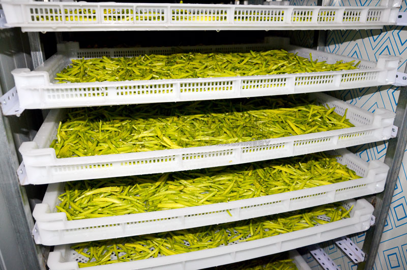 黃花菜別名萱草,又叫金針菜,富含蛋白質(zhì)、脂肪、鈣、磷、鐵及多種微生素,我國南北方都有栽種。黃花菜采收后要立即進(jìn)行蒸燙、脫水、干燥。由于黃花菜采收期正值陰雨高溫季節(jié),如只用自然曬干,就會(huì)有很多黃花菜因?yàn)樘鞖庠驔]有及時(shí)烘干,造成品質(zhì)下降,甚至?xí)l(fā)生霉變,造成很大的經(jīng)濟(jì)損失。因此,對(duì)黃花菜進(jìn)行人工干制和選擇合理的干制工藝及干燥設(shè)備,對(duì)黃花菜生產(chǎn)具有重要的意義。